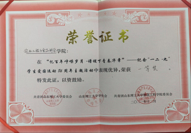 为纪念伟大的“一·二九”爱国运动,继承并发扬革命先辈的奋斗精神,激发365英国上市(集团)有限公司学子的爱国热情及家国情怀。365英国上市(集团)有限公司学生代表队于12月9日参加纪念“一二·九”运动86周年活动,并取得一等奖的优异成绩。
