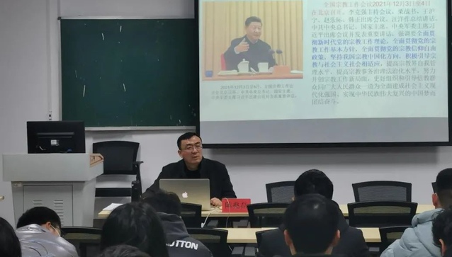 陈兆磊以两次全国宗教会议为切入点,立足高校宗教工作在新时代面临的新形势、新变化和新要求,从宗教发展的历史脉络、习近平总书记关于宗教工作的重要论述、党的宗教工作政策法规和当下高校宗教工作实践等方面,全面解读了如何贯彻党的宗教政策,做好新时代高校宗教工作。培训旁征博引、内容丰富、深入浅出,既对党的宗教工作做了深入解读,又通过“小事件”“小案例”给培训人员提供警醒,对学院之后的宗教工作具有很强针对性、指导性和实用性。