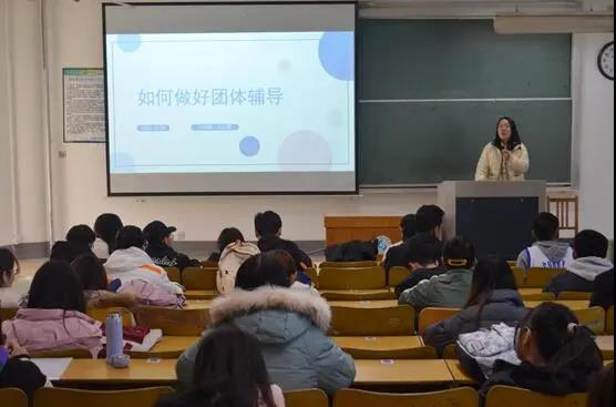 培训中,孙绪霞从团体辅导是什么、团体辅导的流程、注意事项三个方面为大家作介绍。她点明团体辅导可以增进与建立良好的人际关系,增强同学们的归属感与认同感,体验团队间的互助与互利,帮助参加者不断探索从而自我成长。同时,她表示,团体辅导活动不仅仅是“做游戏”,同学们参与感受及体验分享至关重要,不仅可以让同学们降低自卫心理,还有利于彼此认同与关注。在规划团辅活动时,前期准备要充足,保证活动顺利进行,活动过程中要照顾到每个人的情绪,激发参与者积极性。最后,史长歌为大家介绍了团辅游戏锦集,为在场的心理委员介绍了各类团体辅导游戏及作用,同时为大家推荐了《大学生朋辈心理辅导》书籍,引导同学们积极交往、朋辈互助、共同成长。