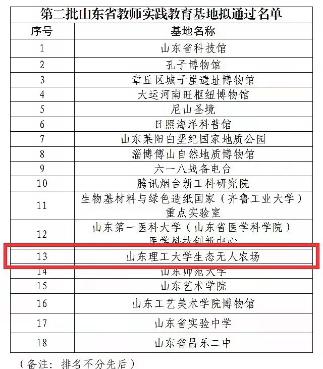 近日,山东省教育厅公布了第二批山东省师德涵养基地和教师实践教育基地名单,我校“生态无人农场”通过遴选,榜上有名。