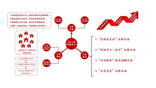 我院学生公寓党团服务中心成立于2020年6月,位于15号学生公寓308室,通过打造党团文化教育基地、“活力引擎”阵地建设等加强学生思想引领,实现思想教育“一站式”;通过党员联系网格宿舍、学生工作人员现场办公等,实现公寓管理“一站式”;通过打造“雷锋在身边”“传统节日一起过”等服务品牌,设置流动图书站、意见反馈箱,配备急救药物、针线包等开展便民利民服务,实现志愿服务“一站式”。通过三个“一站式”,着力解决青年学生的小关切、小问题,做实点滴小服务,构筑学生大幸福。目前,学院又分别在Y2H、13BH、8H、23H、24H、YAH和YCH公寓设立7个党团服务站,形成“1+N”社区管理服务模式,努力把学生公寓打造成为党建和思想政治工作的高地、培养人才的园地、管理服务学生的基地、维护校园安全稳定的阵地,构建“三全育人”新格局。