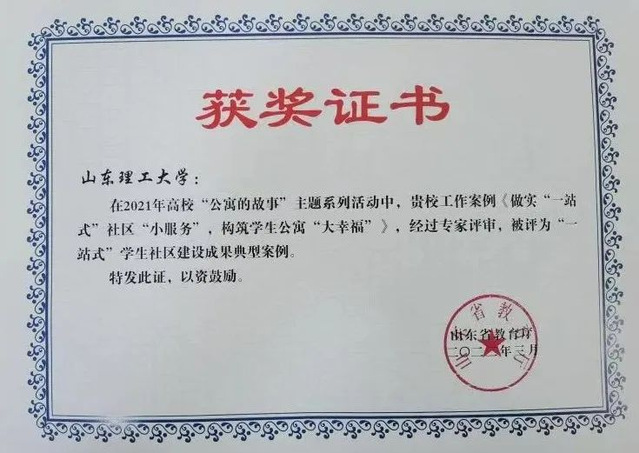 近日,山东省教育厅公布 2021 年高校“公寓的故事”主题系列活动评选结果,我院以学生公寓党团服务中心为例推报的“做实‘一站式社区’‘小服务’,构筑学生公寓‘大幸福’”案例代表学校参评,获评“一站式”学生社区建设成果典型案例。