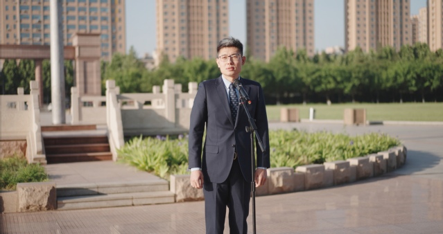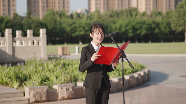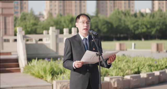 优秀团员代表、农工学院学生王心雨以“百年征程心向党、青春奋发向未来”为题做国旗下的主题演讲,号召广大团员青年从革命历史中汲取精神之钙、力量之源,勇敢肩负起时代赋予的重任,投身到祖国建设和社会发展最需要的地方,以实际行动诠释新时代团员青年的责任与担当。