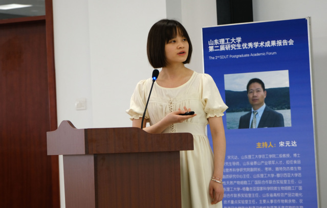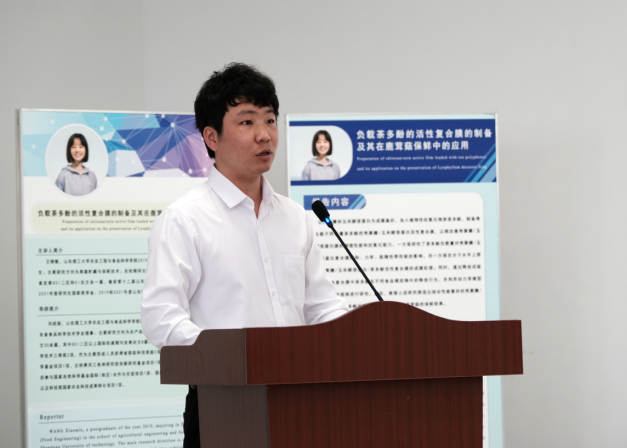 王晓敏汇报的题目是“负载茶多酚的活性复合膜的制备及其在鹿茸菇保鲜中的应用”,研究内容为通过加入植物性抗氧化物质茶多酚改善壳聚糖/玉米醇溶蛋白膜的物理性能和抗氧化能力。在研究活性膜基本性能和成膜机理的基础上,利用动力学模型对茶多酚释放规律进行研究,最后,根据上述研究结果筛选出综合性能最好的活性复合膜应用于鹿茸菇的采后保鲜,为鹿茸菇保鲜技术的研发提供数据参考和理论支持。