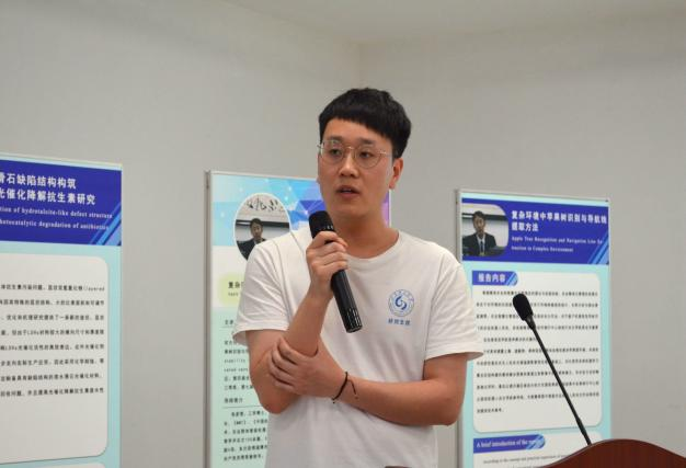 郭金凯汇报的题目是“农业机器人的研发与学科相关竞赛的参加”,研究内容为目前农业生产存在工作环境差、工作效率低下以及劳动力缺乏等问题,农业机器人的研究将给这些问题提供解决思路,研究内容主要分为三个方面,一是基于深度学习的花椒采摘机器人的系统设计;二是如何选取合适的深度学习模型以及对模型进行改良;三是相关学科竞赛经验分享。