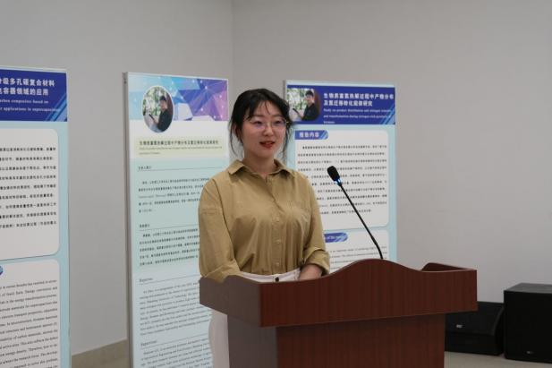 范庆文汇报的题目是“生物质基分级多孔碳复合材料及在超级电容器领域的应用”,由于能量转化和储存技术是能源转型过程中重要且关键的环节,超级电容器具有极高的功率密度、倍率性能和循环稳定性等特点,在高功率领域备受青睐。碳基材料具有高比表面积、优异电子传输性能、可调孔径分布结构等优点,常作为超级电容器的高性能电极材料,并进行研究。