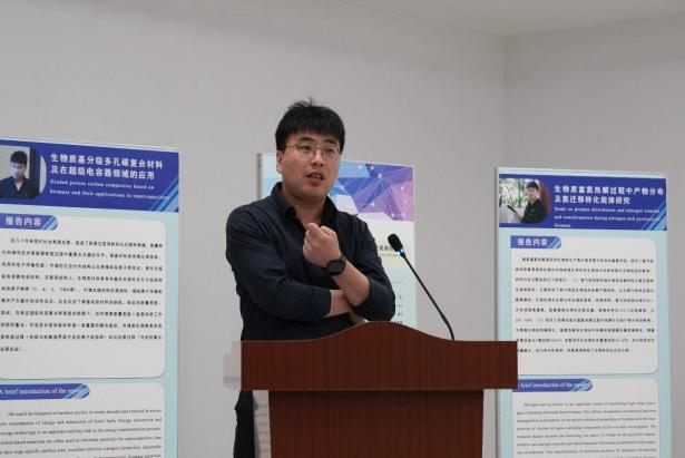 会议伊始,付鹏教授向与会人员表示欢迎,分别向大家介绍了主讲人及其汇报内容,博士生范庆文,硕士生赵安、郑庆琪、代蕾分别作了“生物质基分级多孔碳复合材料及在超级电容器领域的应用”、“生物质富氮热解过程中产物分布及氮迁移转化规律研究”、“基于挥发分与焦结构解译的木质素热转化应答机制研究”、“TiO2基光催化剂的制备及其催化生物基甲醇制氢规律研究”的学术成果报告。