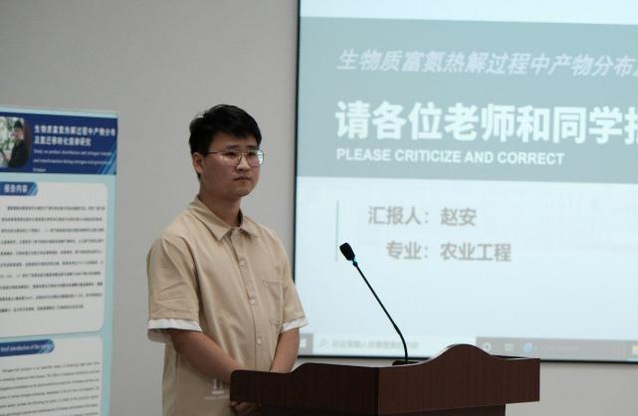 赵安汇报的题目是“生物质富氮热解过程中产物分布及氮迁移转化规律研究”,研究主要为两个方面,一是为对氨气烘焙预处理生物质热解特性及氮迁移转化规律研究,研究氨气烘焙生物质的热解产物特性,以及氨气烘焙过程中氮素掺杂、迁移机理及含氮化学品调控规律;二是研究了尿素浓度对富氮热解过程中热解行为和产物分布的影响。