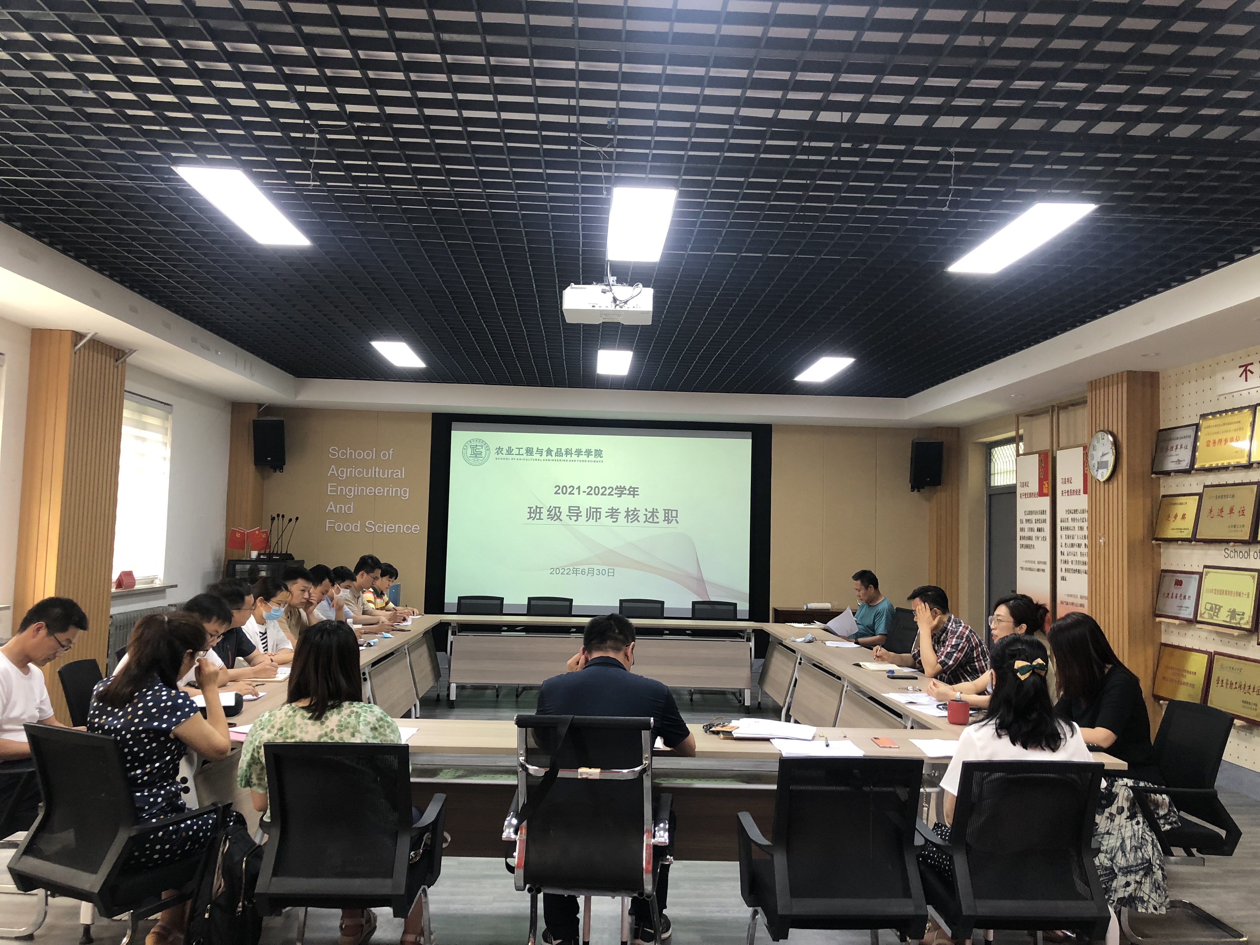 24位班级导师依次结合自身实际围绕“五个一”工作标准,从与学生谈话、与辅导员或任课教师交流、学业辅导或专业交流、开展学术报告、组建并指导科技创新团队等方面进行述职。对一学年以来的工作成效、特色做法、典型经验进行互相交流学习。