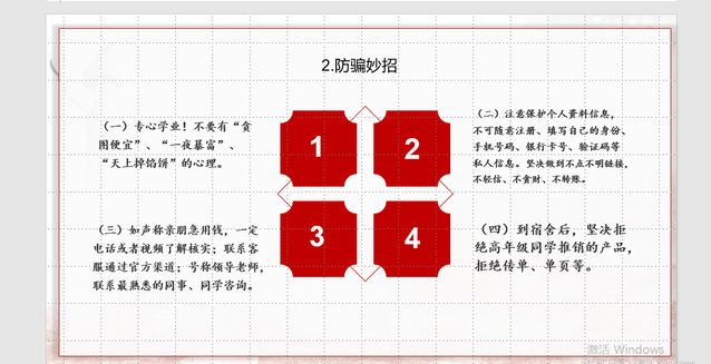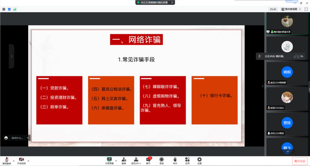 随后,辅导员通过警示案例,从人身安全、财产安全、交通安全、网络安全、防诈骗、防传销等方面讲解,培养新生树立安全意识,增强自我防范能力,积极预防各类意外事件的发生。
