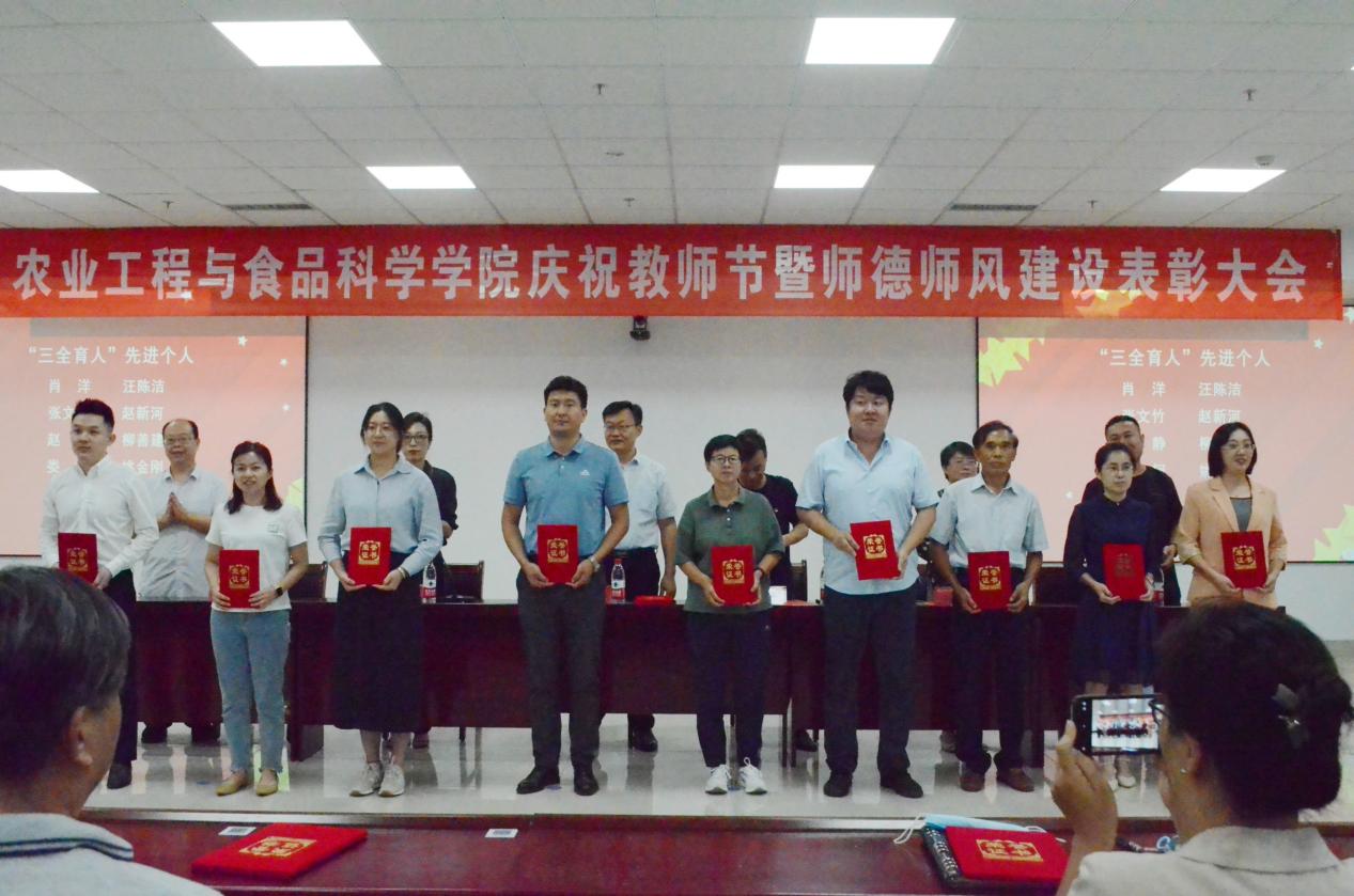 学院执行院长李志合宣读了《关于表彰农业工程与食品科学学院教学先锋、科研先锋、“三全育人”先进个人的决定》,授予王伯龙等10人“教学先锋”荣誉称号,授予刁培松等10人“科研先锋”荣誉称号,授予肖洋等10人“三全育人”先进个人荣誉称号。同时发布并解读《农业工程与食品科学学院本科生导师制实施办法》。