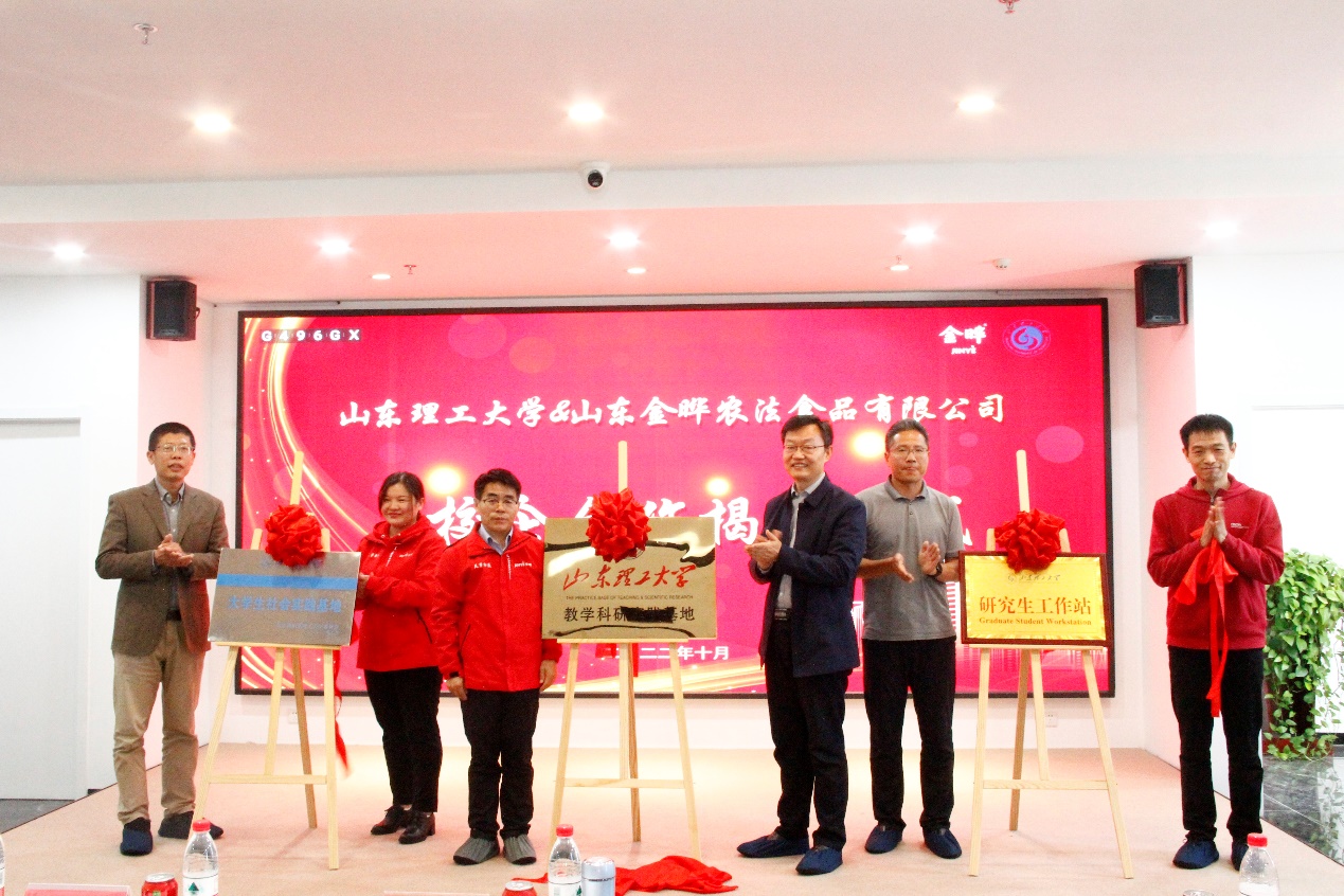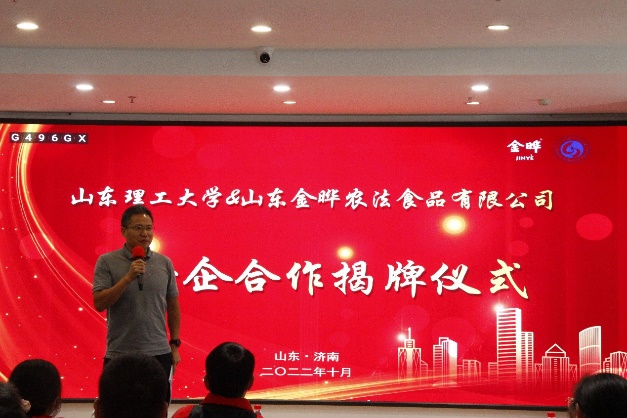 10月9日,“金晔食品”奖助学金暨校企合作揭牌仪式在山东金晔农法食品有限公司举行。山东金晔农法食品有限公司董事长李金伦、生产技术总监王泽祥(我校2006届食品专业校友)、人力资源总监胡银丽、产品总监刘位刚、人力资源经理高延娟,农业工程与食品科学学院党委书记杨直、食品系教授郭衍银,合作发展处校友联谊办公室主任刘海涛、基金管理办公室主任张国强出席仪式。