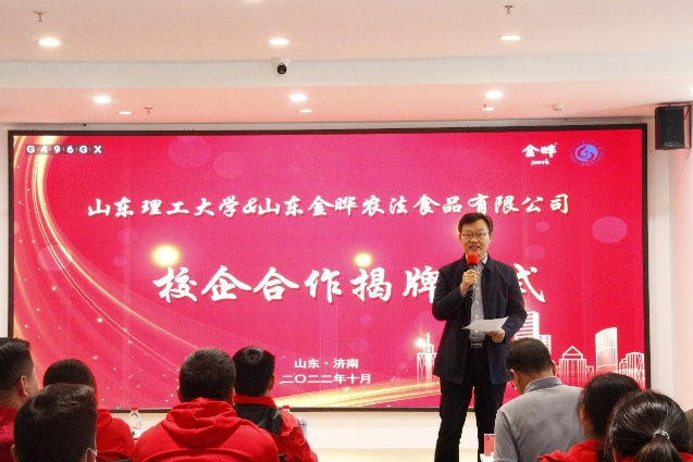 李金伦以“校企合作&为爱而生”为题介绍了公司基本情况。他表示,公司作为“为爱而生”的企业,一直致力于奉献社会,以赤子之心报国。此次捐赠50万元用于建设金晔智慧教室和设立奖助学金,用以改善学院办学环境,提高学院学生创新创业能力。下一步将与山东理工大学密切沟通交流,开展更加多元深入的合作,促进双方事业共同发展。