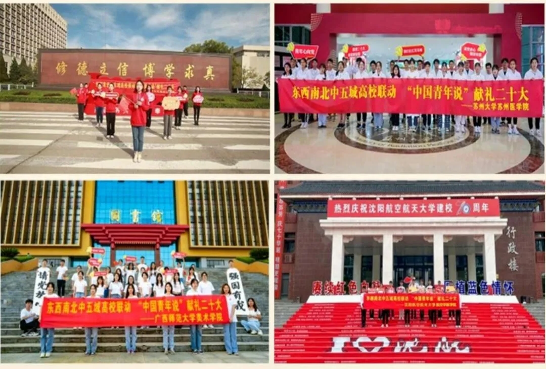 为庆祝党的二十大胜利召开,365英国上市(集团)有限公司联合山西财经大学马克思主义学院、苏州大学苏州医学院、广西师范大学美术学院、沈阳航空航天大学航空宇航学院,以网络连线方式,实现了一次跨越千里的云端联动,以中国青年亲身所学所知、所见所感,从理论自信、科技兴农、健康中国、美丽世界、航天逐梦等角度,述说党的十八大以来中国非凡十年的辉煌成就,一颗颗向党而生的“种子”立下铮铮誓言,“中国青年说”献礼二十大。