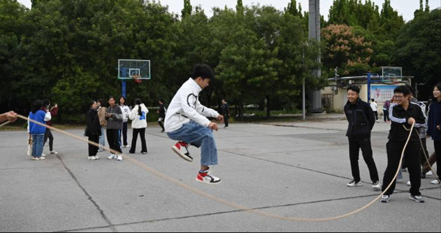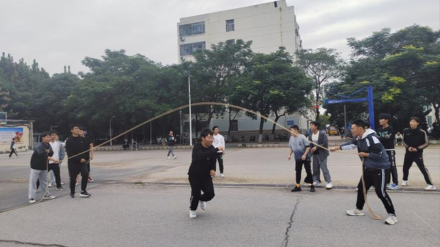 此次趣味活动共分为八字跳绳比赛和拔河比赛两部分,均以班级为单位,以抽签的形式确定对弈双方。首先进行的是八字跳绳比赛,14支参赛队伍依次上场,参赛队员团结一心、步调一致,赛场上队员们齐心协力,赛场下,各班同学的呐喊加油声此起彼伏,场上的氛围也逐渐推向高潮。