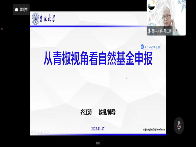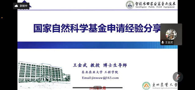 11月17日上午,学院邀请东北农业大学王金武教授、吉林大学齐江涛教授线上分别作了题为“国家自然科学基金申请经验分享”、“从青椒视角看自然基金申报”的学术报告,报告会由学院副院长孙霞主持。