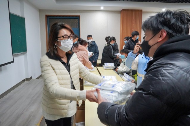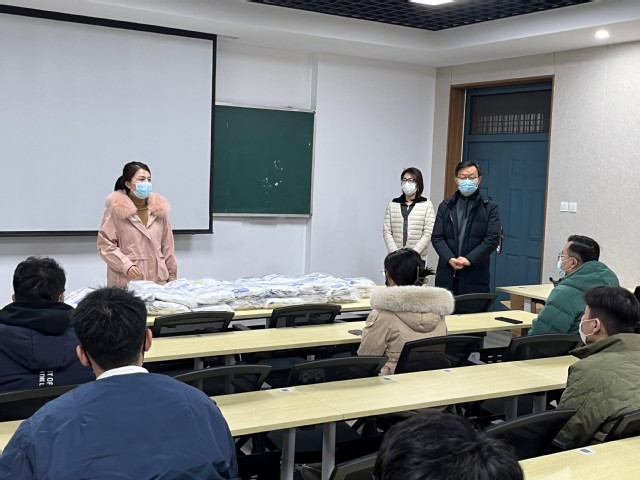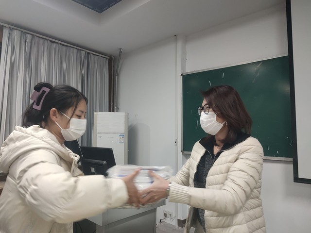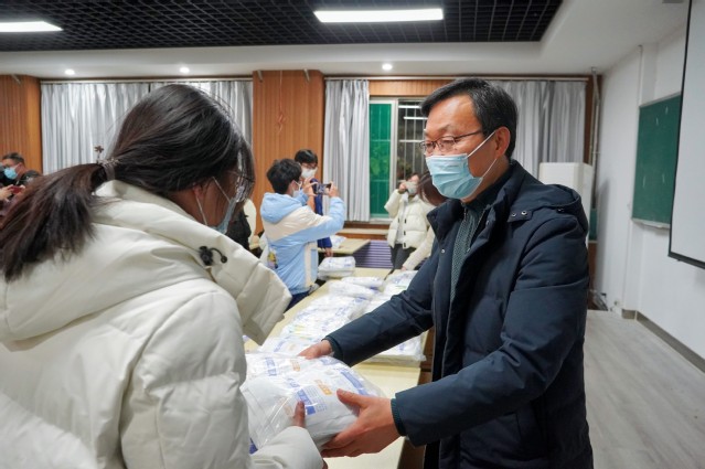 抗击疫情不松懈,浓浓关怀暖人心。11月29日,学院党委书记杨直、党委副书记戴洁来到12号教学楼111教室,为全体在校学生发放由农工党淄博市市直二支部爱心捐赠的20000只口罩。