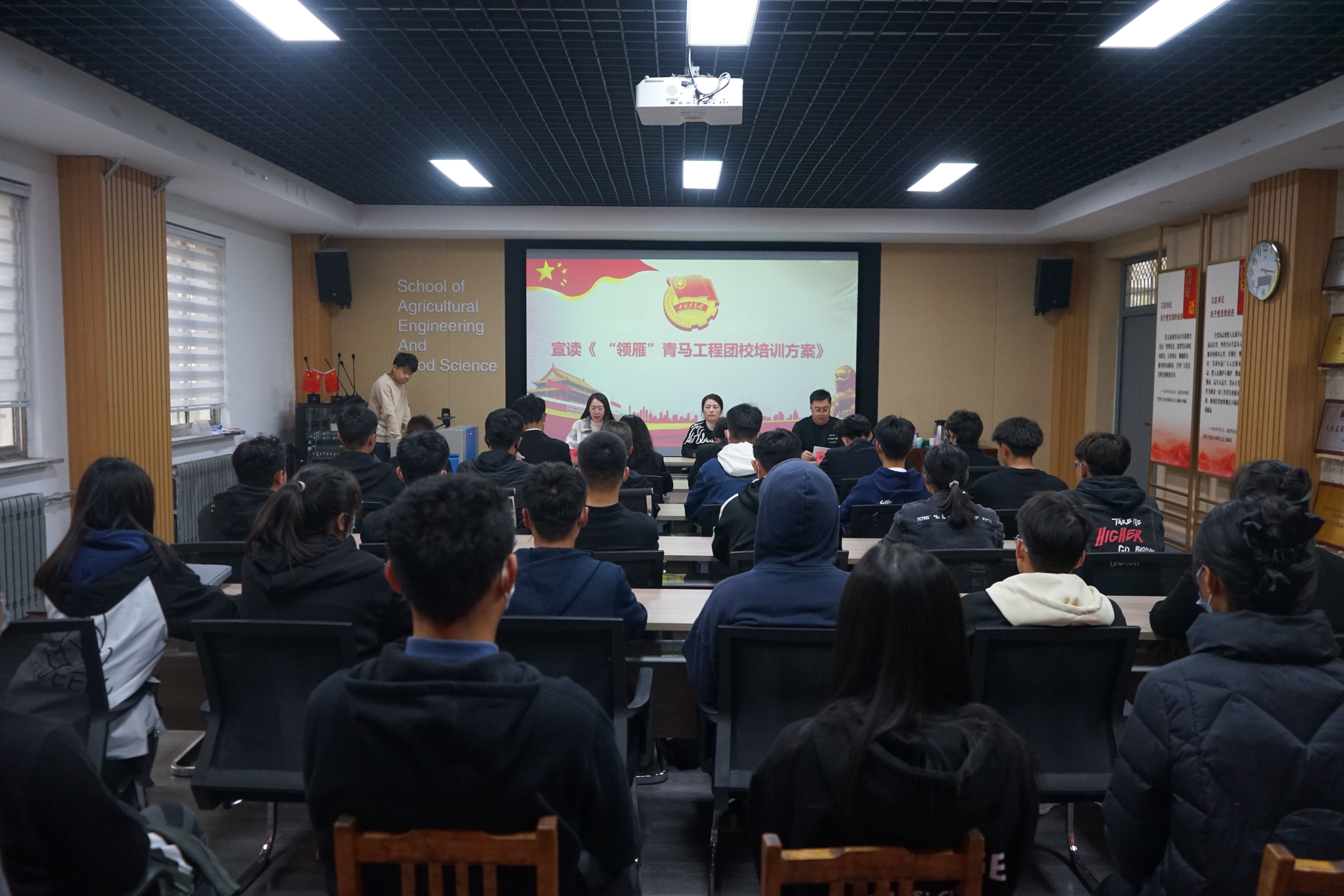 培训在雄壮激昂的国歌中开始。首先,魏洪磊对“领雁”青马工程团校进行简要介绍。随后,马俊俊宣读《农业工程与食品科学学院“领雁”团校培训方案》,她提到此次培训班将从集中授课和素质拓展两方面开展,通过理论学习和实践培养锤炼本领、提升自我,深入推进学院基层团建工作,强化团干部的队伍建设。