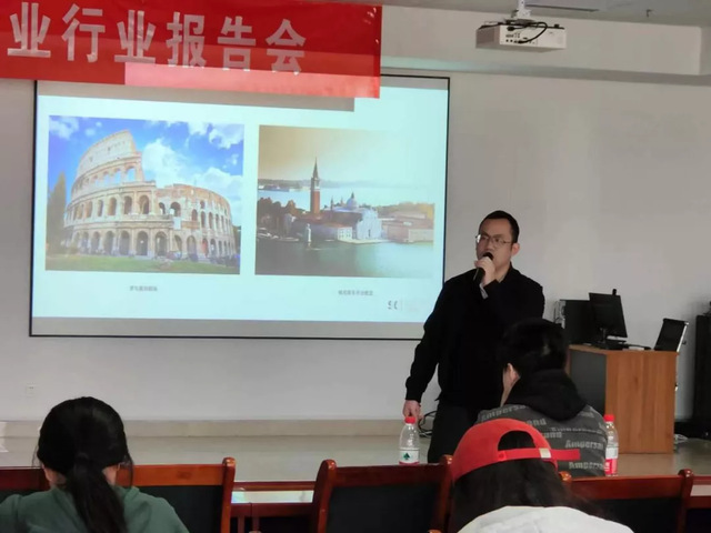 上宸设计公司的李奕霖结合自身国外留学经历向同学们分享他对设计行业的看法,从“品牌、客户、产品”的设计三要素出发,向同学们介绍“不一样的设计流程”,即以客户为中心,创造性解决问题。同时,他建议同学们要多读书为将来的就业做好知识储备。