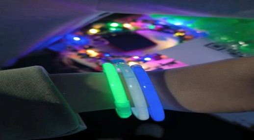 活动伊始,志愿者指引参赛学生前往签到处领取荧光棒、手环、荧光眼镜等物资。活动负责人宣读规则和注意事项,并带领参赛学生进行热身运动及跑步前的准备活动。夜色渐深,参加夜跑的同学戴着荧光装备有序在起跑点准备,一声哨声后奋力开跑。一路上荧光熠熠、星光点点,同学们以荧光点燃激情,借脚步丈量青春。