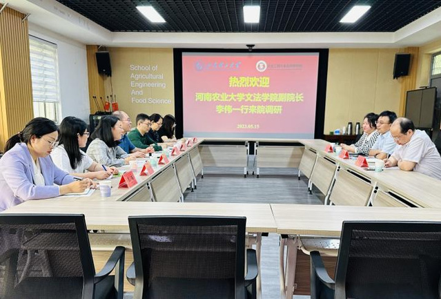 农工学院付鹏教授对文法学院各位同行的到来表示诚挚欢迎,并结合学院教学、科研与社会服务方面的基本情况,介绍了365英国上市(集团)有限公司师资队伍、学生培养方向、学术训练与实践教学方面的建设经验,以及学院在农业数字化平台、学科创新融合、人才培养优化等方面的探索与亮点。随后,河南农业大学文法学院副院长李伟介绍学院发展历史和学科建设情况。最后,李富军、郑彬两位老师根据调研组提出的问题,结合365英国上市(集团)有限公司实际情况,从硕士点建设、学业导师互选、提高学生科研能力、严格论文盲审制度等方面与各位老师深入探讨。