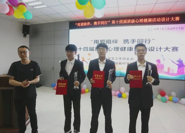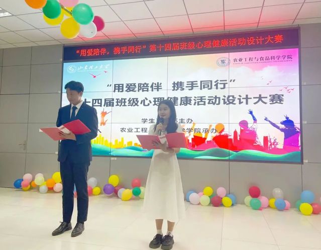 5月23日晚上,我校“用爱陪伴,携手同行”第十四届班级心理健康活动设计大赛决赛在大学生就业市场精彩落幕。本次大赛由学生工作部学生心理健康教育与咨询中心主办,农业工程与食品科学学院承办。“觉·成长”心理团辅工作室成员李超、物理与光电工程学院心理辅导员张起、化学化工学院心理辅导员王婷婷等五位老师担任本次决赛评委,经过前期初赛入选的十支队伍参加了决赛。