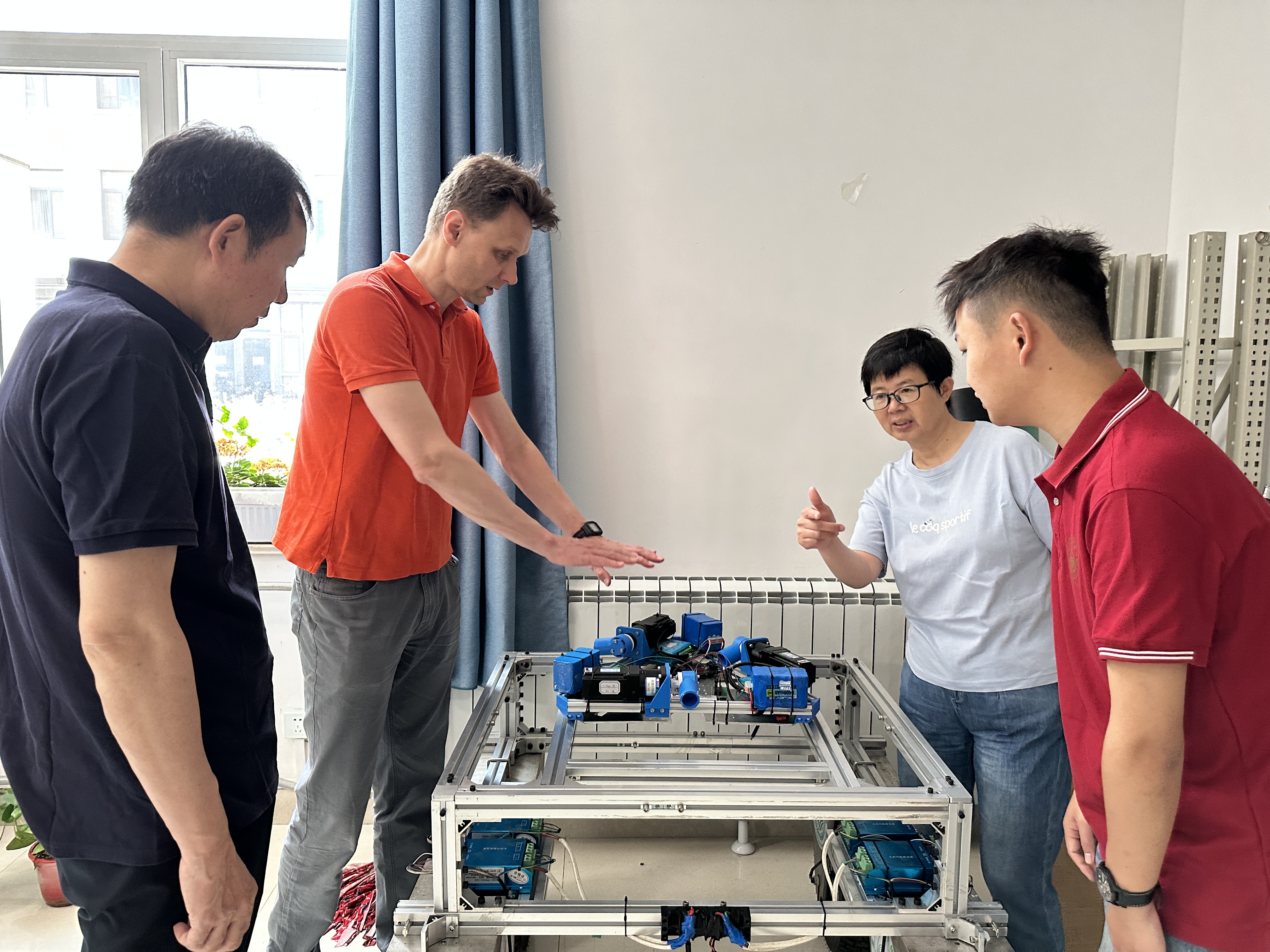 23日,我校中英智能农业联合研究中心和智慧农场技术国际合作实验室的成员与斯文教授在我校的生态无人农场展开交流和田间试验。在交流活动中,实验室成员展示了兰玉彬教授团队研发的智慧云大脑平台、农机远程控制、无人机遥感以及无人机施药等技术,并详细演示了这些技术的原理、功能和应用场景,并对相关的试验设备性能进行了实地测试。斯文教授与实验室成员就技术细节进行了深入的讨论和交流,表示高度赞赏,尤其对农业无人机相关技术的研发与应用表现出极高的兴趣。