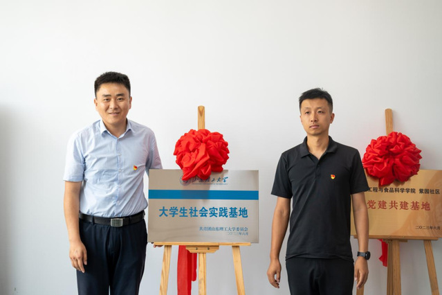 徐藤与高健为“大学生社会实践基地”揭牌。