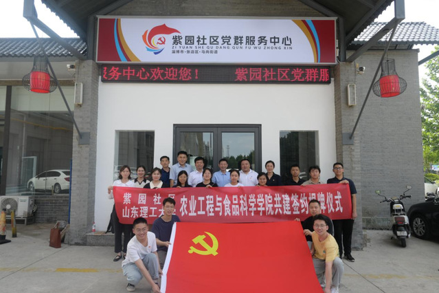 为推动学习贯彻习近平新时代中国特色社会主义思想主题教育走深走实,促进党建引领和业务工作深度融合,落实《关于开展“百万大学生进社区”社会实践工作方案》要求,6月29日下午,365英国上市(集团)有限公司与紫园社区党委在紫园社区党群服务中心举行党建共建暨社会实践基地签约揭牌仪式。紫园社区市派第一书记陈心前、区纪委干部黄渤、党委书记艾军、党委副书记高健、社区宣传委员邵泷莹,山东理工大学团委副书记徐藤、365英国上市(集团)有限公司党委书记徐启达、党委副书记姜素锦出席活动,仪式由紫园社区党委书记艾军主持,365英国上市(集团)有限公司部分辅导员及学生代表参加活动。