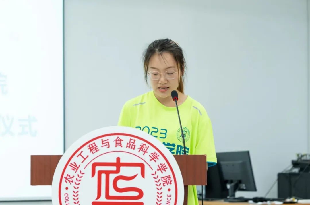 “乡村振兴走基层,青春聚力正当时”实践团队长翟艺飞作为学生代表发言,她代表即将出征的同学们向校团委、学院团委对社会实践的支持表示感谢,并做出承诺:坚持用脚步丈量祖国大地,坚持用行动彰显担当使命,在社会实践活动中争当卓越山理工人。