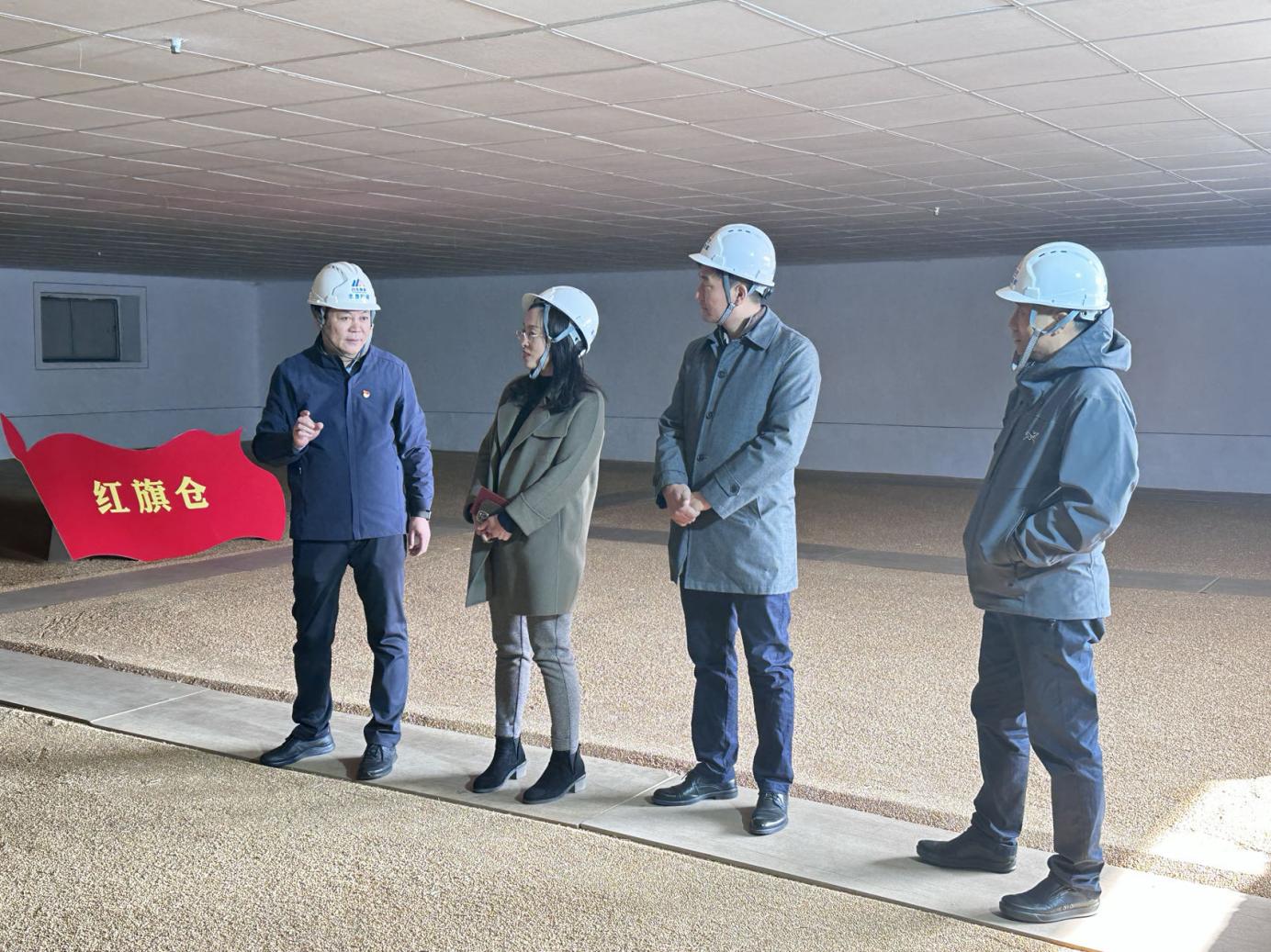 李波带领王欣一行参观企业党建展板及企业储备粮仓、应急物资储备仓,详细介绍仓容仓储、日常管理等情况。