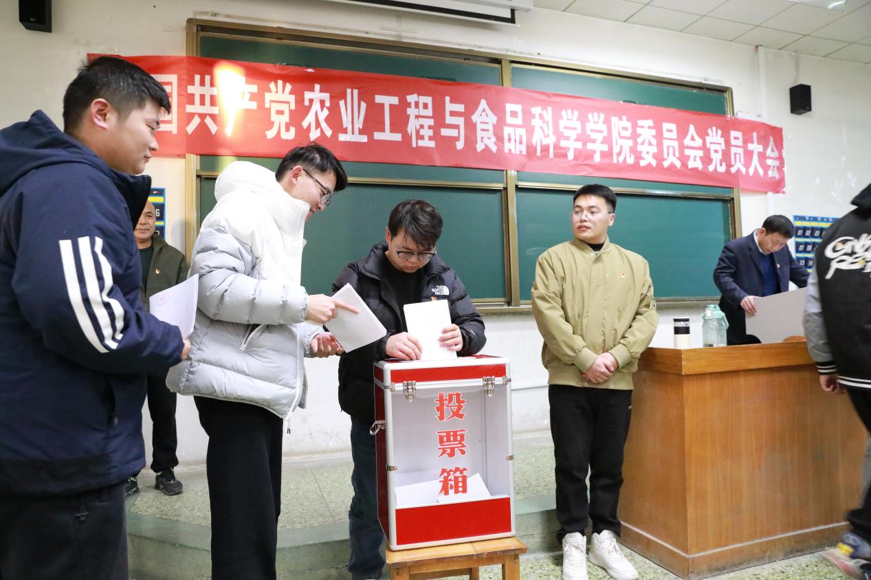 选举投票环节,全体党员严格按照选举工作要求,通过差额选举和无记名投票的方式,认真严肃填写选票,依次投入票箱。依据计票结果,最终选举付鹏、张祥彩、孙婷3名同志当选农业工程与食品科学学院党委增补委员。
