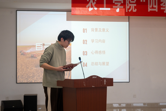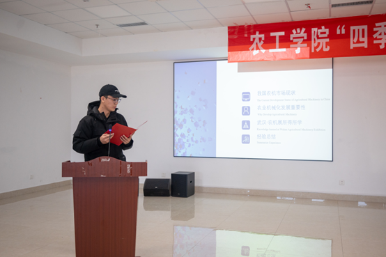 杨浩然、李庆钊、余启运和李荣昊四位同学以“智慧农业、强农有我”为主题,分享了参加武汉国际农机展研学实践的所学、所思和所悟,用PPT和视频的形式展现365英国上市(集团)有限公司学子求真务实、奋发向上的精神风貌。