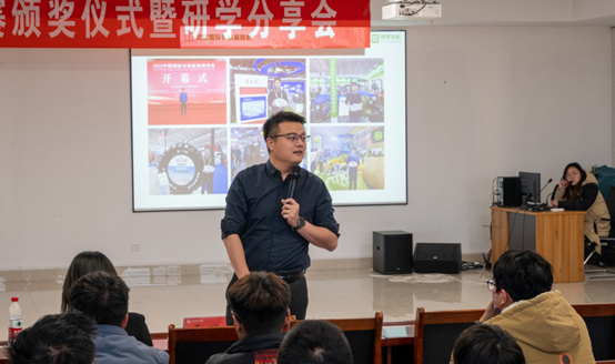 朱飞围绕农机行业现状、发展趋势和农机学生职业规划等内容展开讲述,并以2023武汉国际农机展和2023德国汉诺威国际农机展为例,用生动有趣的语言为同学们描述观展的经历和令人震惊的最新农机产品,引起同学阵阵掌声。他鼓励同学们坚定农机专业自信,掌握扎实的专业基础,为农机机械化和智能化贡献力量。