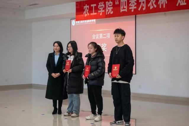 近日,农工学院“四季为农杯”短视频大赛颁奖仪式暨研学分享会在6号实验楼1104举行。四季为农互联网技术有限公司CEO朱飞、人力资源总监孟莎、学院党委副书记姜素锦、企业相关负责人以及农机专业学生代表参加本次会议。学院团委书记孙婷主持会议。