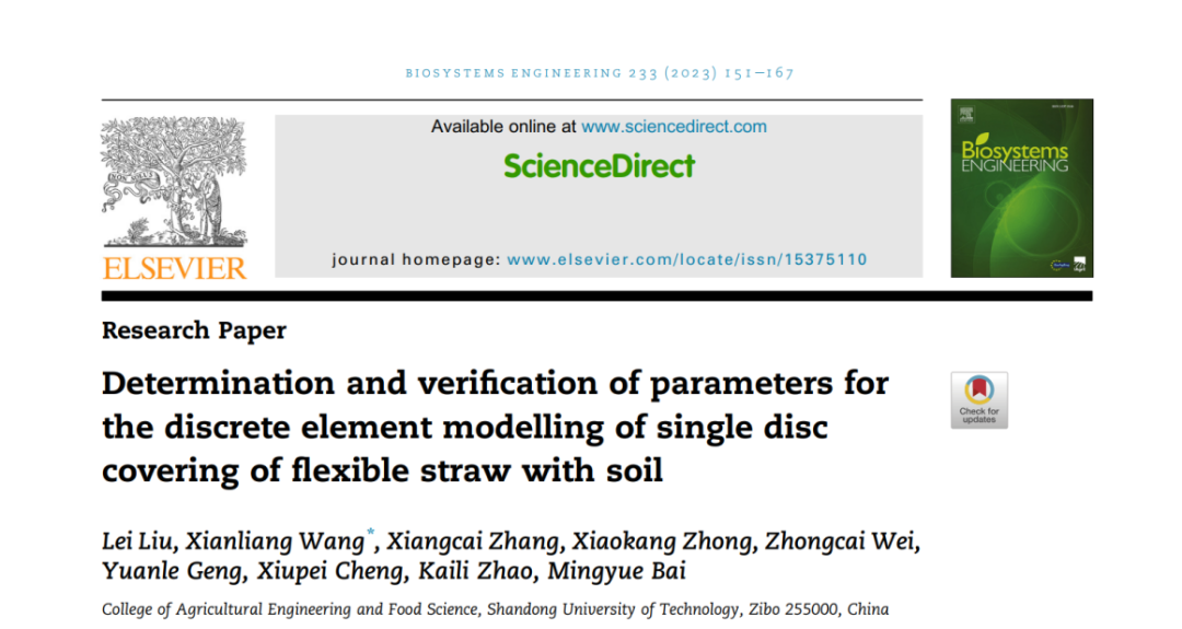 研究成果一:“Determination and verification of parameters for the discrete element modelling of single disc covering of flexible straw with soil”。