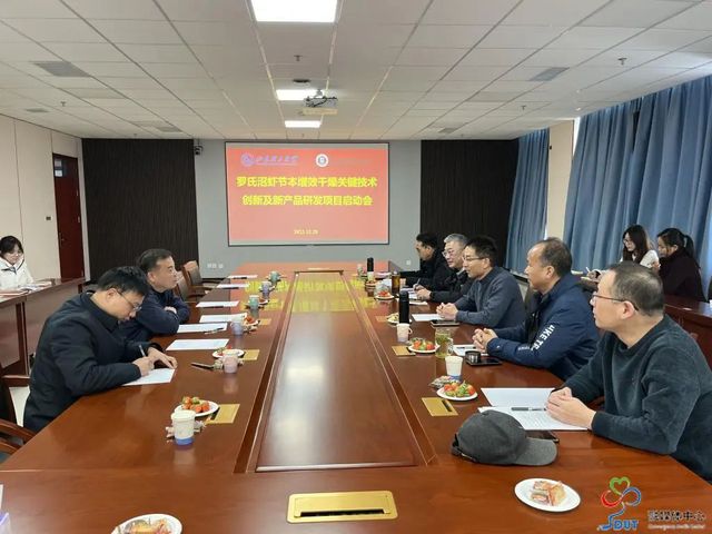 近日,江苏省重点研发计划“罗氏沼虾节本增效干燥关键技术创新及新产品研发”项目启动会在我校6号实验楼1109会议室召开。该项目由江苏戚伍水产发展股份有限公司、江苏大学和我校共同承担,高邮市科学技术局副局长黄翔、江苏戚伍水产副总经理居向东、江苏大学高瑞昌教授及我校农业工程与食品科学学院负责人、项目参与人员等参加。