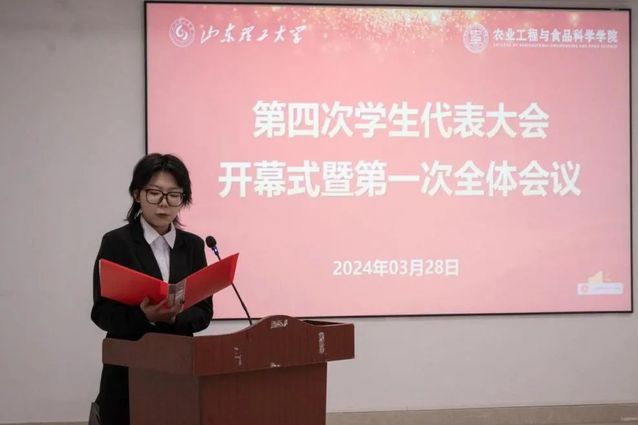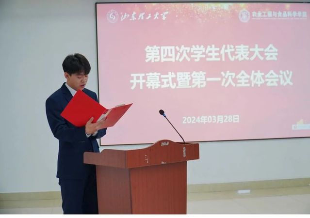 赵纪运代表学院学生会作《农业工程与食品科学学院2023年度学生会工作报告》。他对2023年学生会工作的各方面进行总结回顾,并对2024年的学生会工作做出展望。