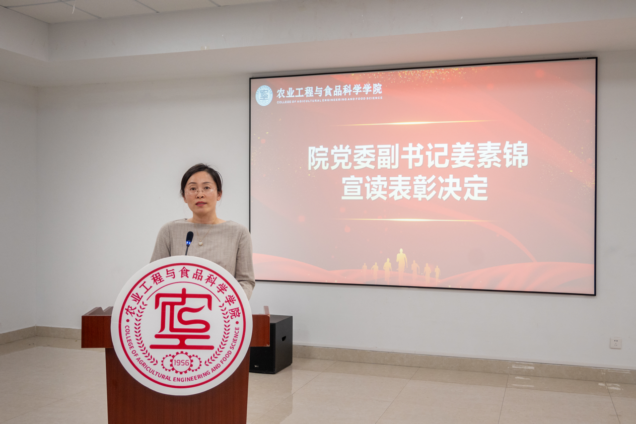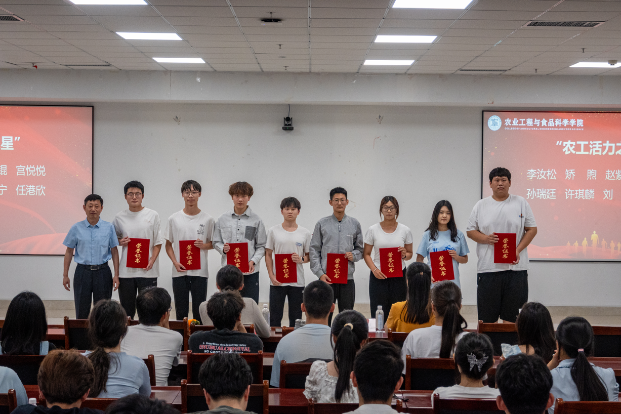 姜素锦宣读表彰决定。本次表彰共设置了三个奖项,分别是农工活力之星、农工飞跃之星及农工舞动之星,用以表彰在阳光体育运动、“活力农工”体育文化节、春季运动会等体育运动中积极参与、刻苦训练、奋勇拼搏的学生。到场嘉宾为获奖学生颁奖,并合影留念。