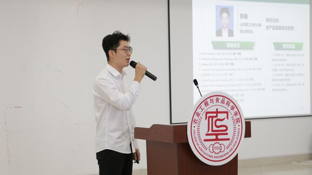 随后,研究生工作部部长赵艳雷教授发表致辞,他表示同学们应当抓住学术交流与学科交叉的机会,进一步掌握学科领域的基础知识,要勇于创新,敢于挑战,将自己的研究成果与现实需求相结合,为社会发展做出积极的贡献。随即,赵艳雷教授宣布山东理工大学第四届研究生优秀学术成果报告会(农工学院专场)暨“研途筑梦”品牌活动——农工学院优秀学术成果交流论坛正式开始。