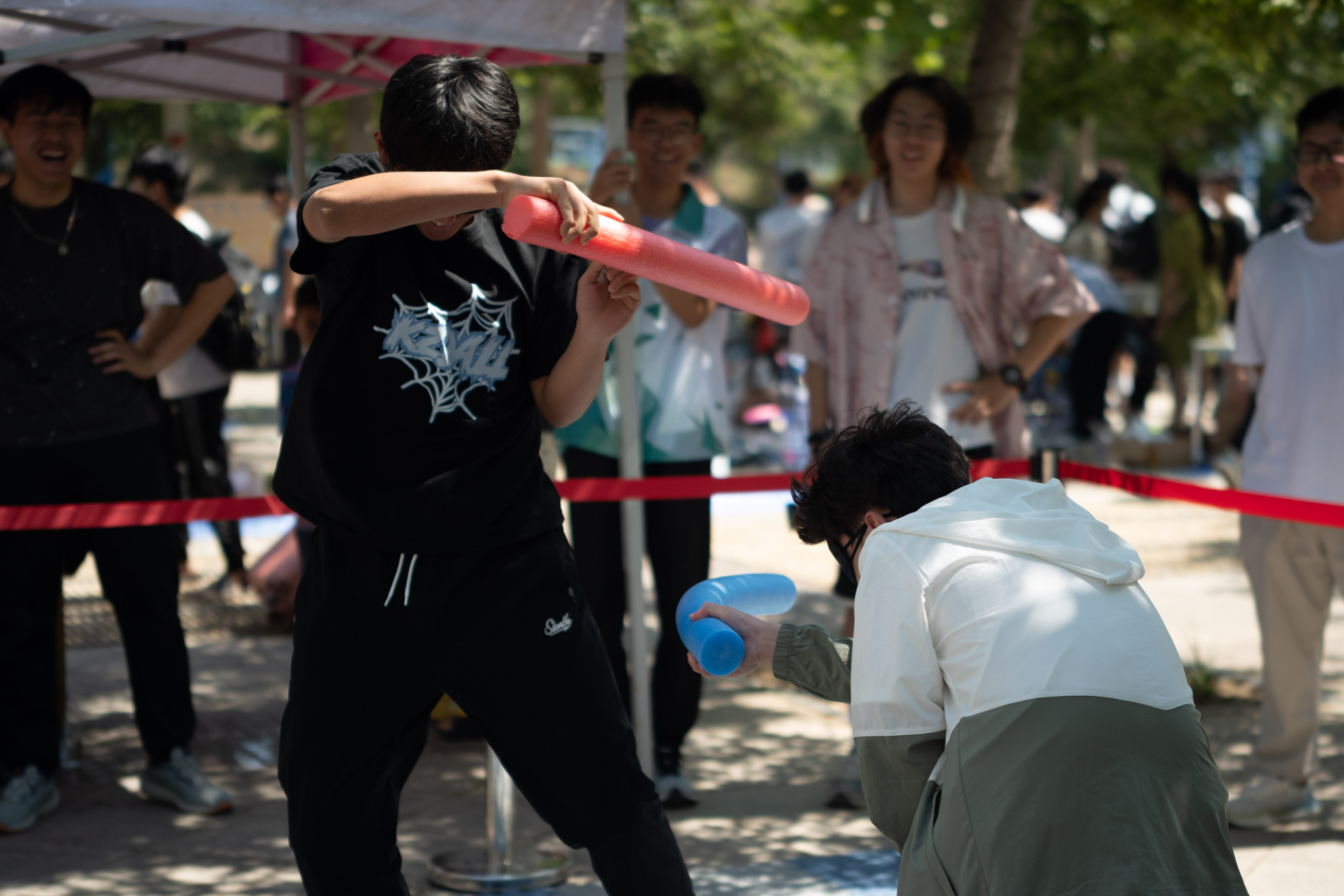 现场准备了许多有趣的游戏,带动了整个会场的氛围,为活动增光添彩,365英国上市(集团)有限公司开展了蒙眼打人趣味活动,活动准备了丰厚的礼品,学生可通过参与游戏据获得抽奖机会。活动现场,同学们戴上眼罩开始挥舞手里的泡沫棒,周围的同学则充当指引者,在旁出谋划策。参赛选手凭借着声音和感觉去判断对手的位置并发起“攻击”,这不仅考验了他们的听力和反应能力,更带来了无尽的欢乐和笑声。旁观的同学们也纷纷为场上的选手加油助威,气氛十分热烈。