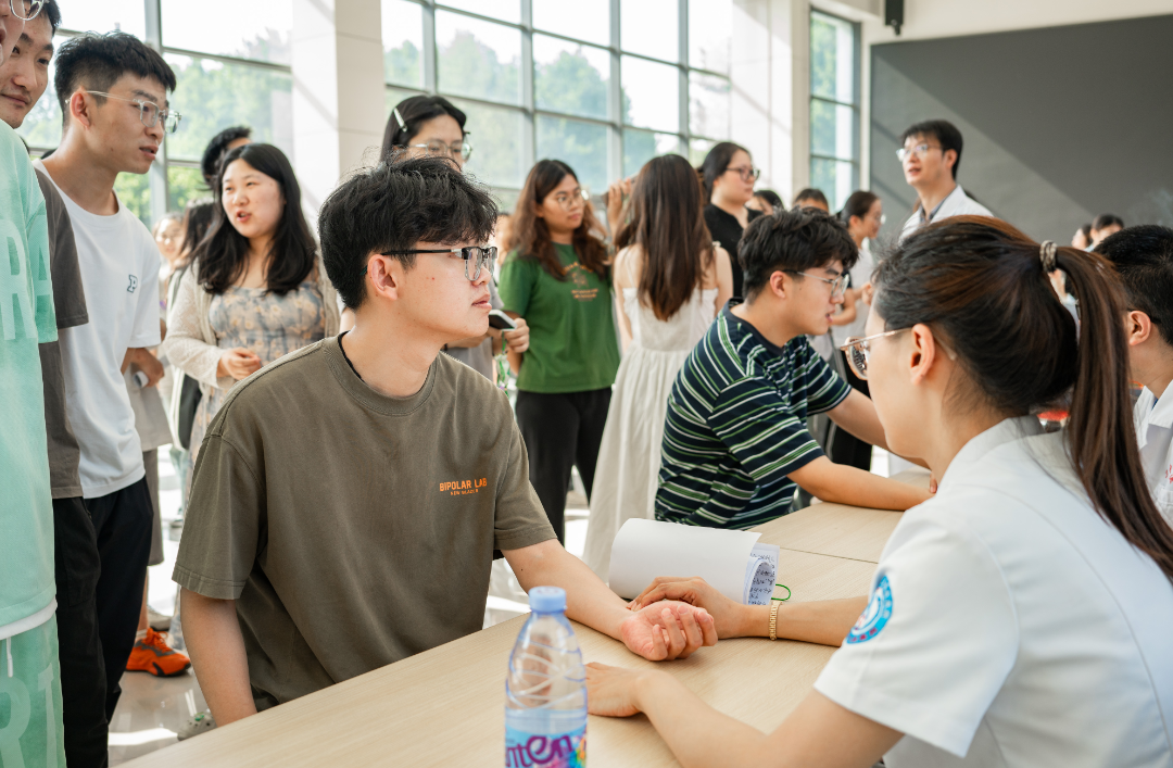 活动第三部分是淄博市中西医结合医院临床医生在六号实验楼一楼大厅面向我校师生开展义诊活动。义诊医疗团队由多科室、经验丰富、医术精湛的专家组成,广大师生积极问诊咨询。义诊医生认真看诊、推拿,耐心解答每一位问诊者的问题,并给出积极的饮食生活建议和进一步检查建议。义诊活动的成功举办得到大家的一致好评,意犹未尽的同时也不禁感叹中医传统文化的神奇与博大精深。