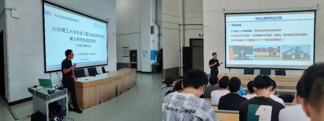 农机系主任王文君副教授分别从为什么报考农业工程类专业、学校学院简介、研究方向与特色、研究生培养、报考相关信息等五个方面介绍了学院及农业工程类专业的基本情况,现场同学围绕报考与招录比、学科优势、个人学业发展方向等问题,与宣讲教师进行了互动交流。