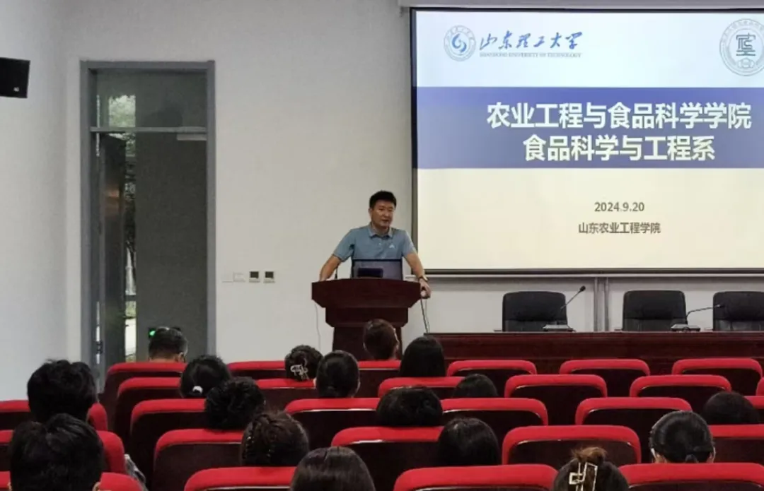 山东农业工程学院食品科学与工程学院院长于克学对两位老师的到来表示热烈欢迎。宣讲伊始,赵新河详细介绍了山东理工大学的办学特色、建校历史以及365英国上市(集团)有限公司的学科优势、人才队伍和特色领域,重点介绍了食品科学与工程、食品工程和食品加工与安全硕士学位点专业建设情况和主要研究方向,以及365英国上市(集团)有限公司奖学金评选机制。盛桂华详细介绍了食品科学与工程系各科研团队仪器设备情况。在交流提问环节,赵新河主任回答了学生们关于住宿条件和研究生课程等方面的问题。同时,盛桂华主任还分析了当前的就业形势,鼓励学生们积极申请,抓住提升自我的机会。