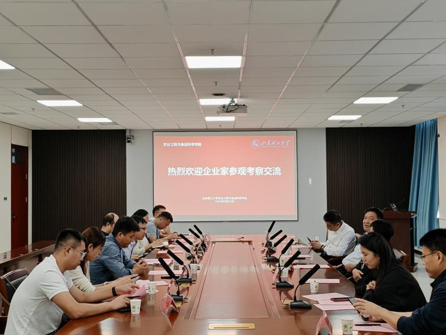 近日,全市企业家活动日暨校企合作创新发展大会农业工程与食品科学专场座谈会于6号实验楼1109会议室顺利召开。山东富欣生物科技股份有限公司董事长郝景峰、中石化工建设有限公司山东分公司总经理王路新、山东顾宸商贸有限公司总经理顾雪梅、山东艾顿净化服务有限公司总经理安东、淄博隆泰机械科技有限公司综合管理部经理刘红燕等企业家代表来访交流。学院副院长付鹏和部分教师代表参加活动。
