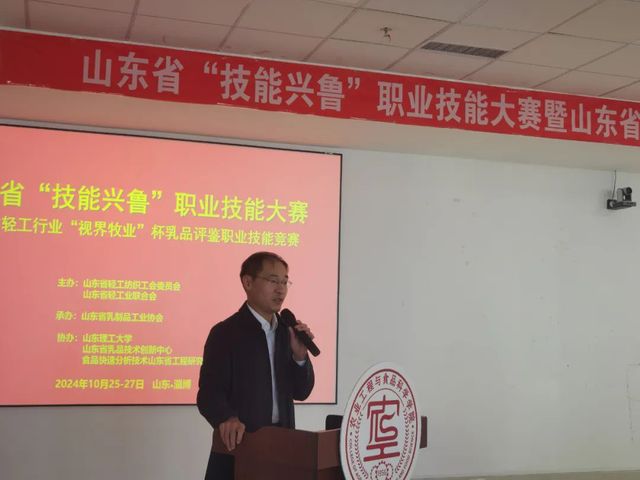 由山东省轻工纺织烟草工会委员会和山东省轻工业联合会主办,山东省乳制品工业协会承办的山东省“技能兴鲁”职业技能大赛——山东省轻工行业“视界牧业”杯乳品评鉴职业技能竞赛(以下简称: 技能竞赛)于20241025日至27日在我校举行,来自山东省的18家乳品企业的选手和高校学生共计130多人参加比赛。