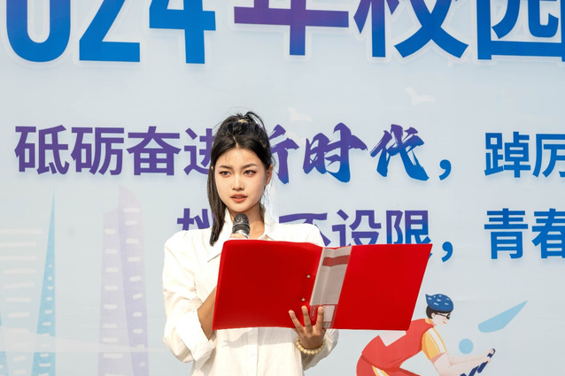 开幕式上,孙婷致开幕辞。她表示青年学生应全面发展,强健体魄是基础,希望同学们走出宿舍,运动起来,将“健康第一、终身体育”的理念发扬光大。同时,希望各位同学充分热身,安全第一,全体运动员以高昂的斗志和顽强的精神突破自我,全面展现山理工学子的豪迈与坚毅。最后,程萌宣布“山东理工大学2024年校园吉尼斯开幕”。