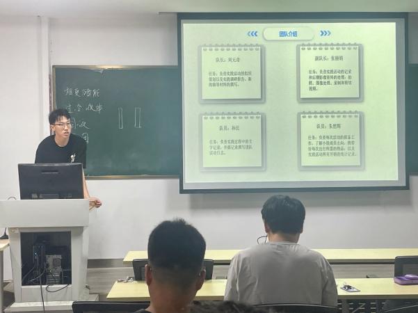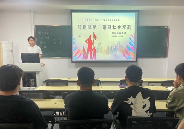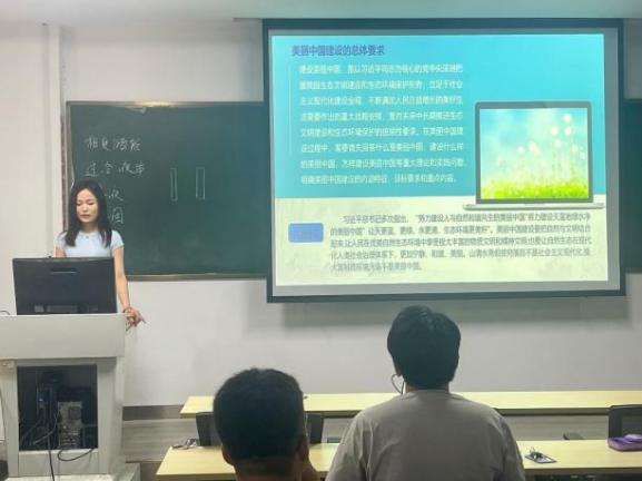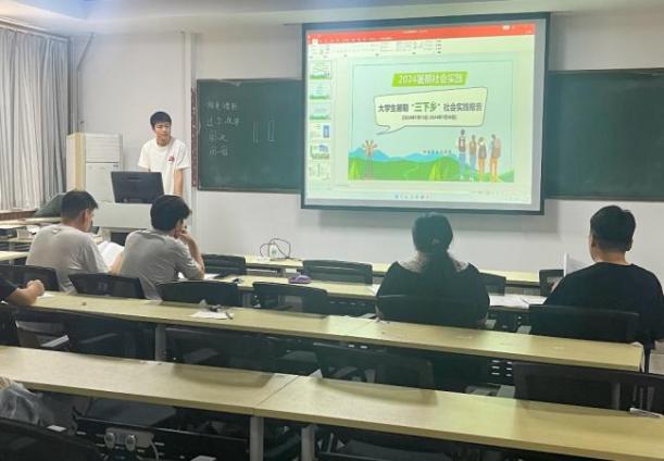 实践团结合实践项目围绕实践背景、实践内容、实践成果等进行汇报。智慧“新农人”团队以淄博禾丰种业无人生态农场为时间地,采集无人机巡查、无人驾驶收割与喷施等技术参数,为无人农场管理人员提供了精准的决策支持和环境监测手段。“田园梦者”团队于高青县蓑衣樊村,通过实地走访、资料搜集及与村民交流等方法,对该村农业种植模式、旅游业发展瓶颈及生态环境保护措施进行了分析,并提出对策和建议。