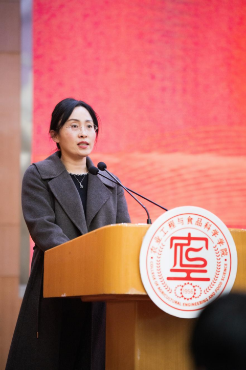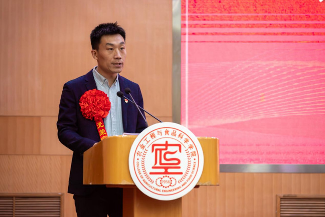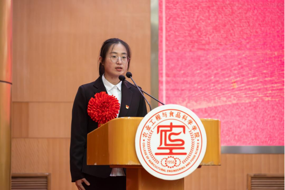 优秀共产党员获得者、学生代表邸璐发言。她结合学生支部支部书记的工作经历和博士学习经历与大家分享三点想法:要坚定理想信念,牢记初心使命,扎实掌握专业知识并运用到社会实践中。要锻炼党性修养,发挥先锋模范作用,增强个人政治定力、思想定力和道德定力。要立足专业,服务国家发展大局,将理论与实践相结合,厚植爱农情怀,练就兴农本领。