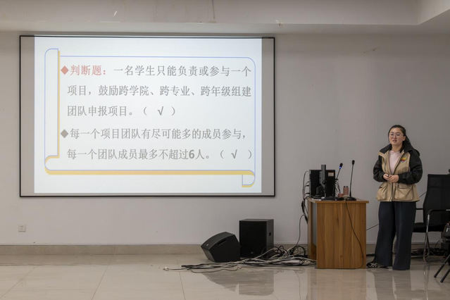 培训会上,王依山围绕大创项目的整体概况、申报流程、评审要求、各部分撰写要点等内容展开,帮助师生更好的认识项目的背景、意义和目标。她以往年申报书为依据分析复盘项目申报落选原因,深入剖析常见问题,并详细解读各类型项目形式审查标准。她还鼓励同学们积极参与、精心筹备,为自己的学业发展积累关键优势。
